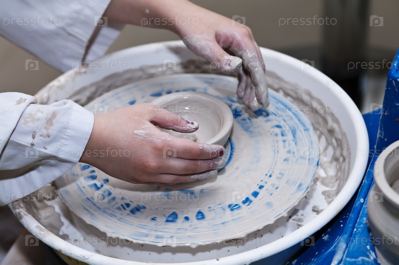 Руки девушки, работающей на гончарном круге