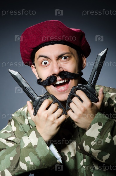 Смешной солдат на темном фоне