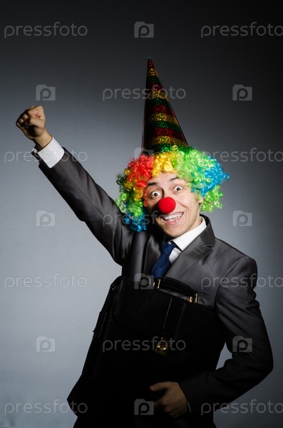 Клоун изображает бизнесмена