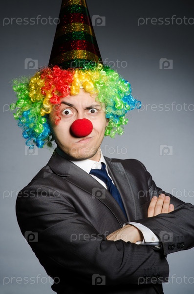 Клоун изображает бизнесмена