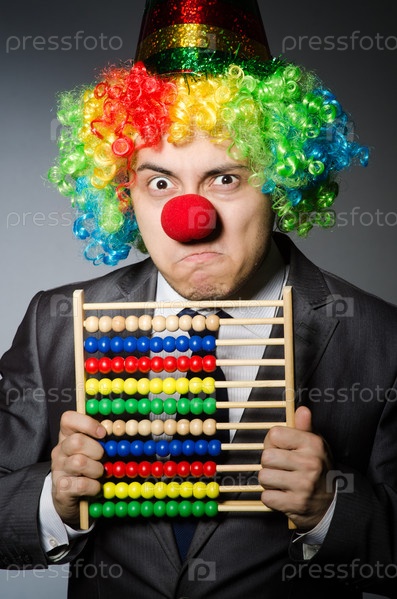 Клоун изображает бизнесмена