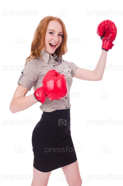 Деловая женщина в боксерских перчатках