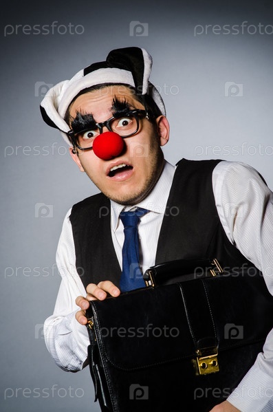 Клоун изображает бизнесмена