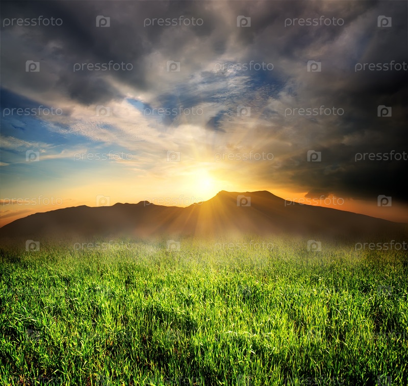 Зеленая трава в горах