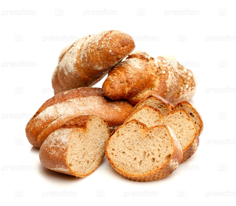 Различные виды хлеба на белом фоне