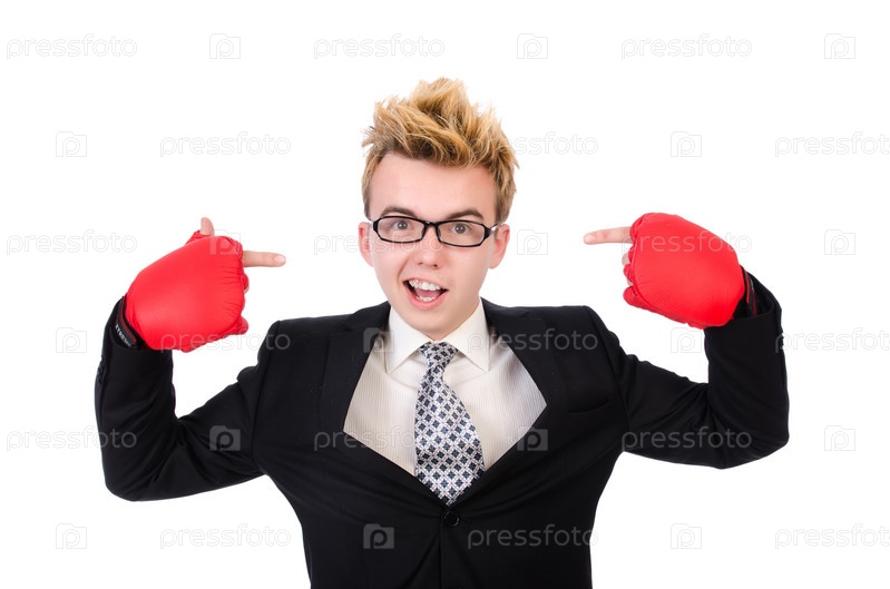 Молодой бизнесмен в боксерских перчатках