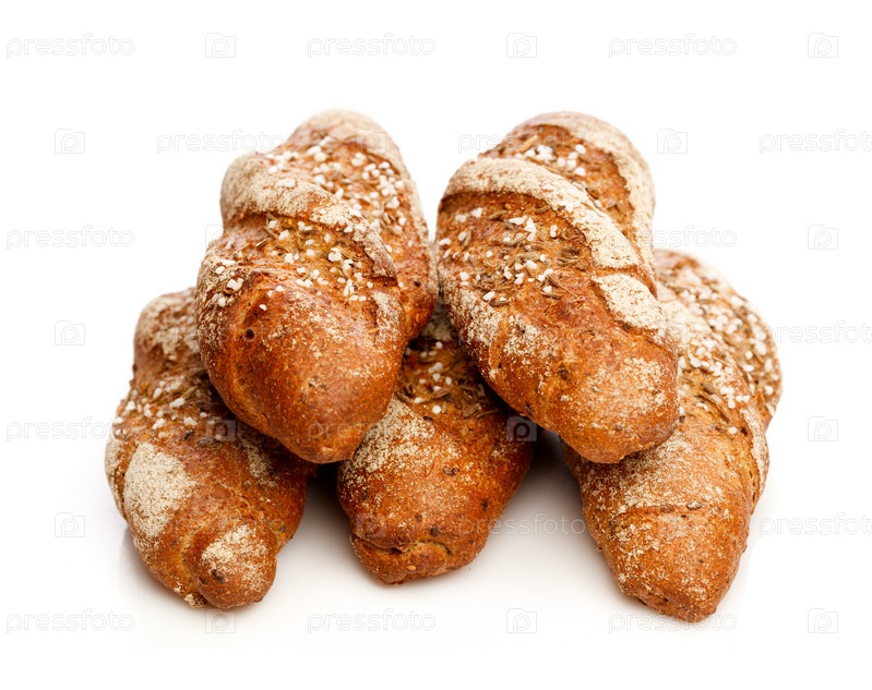 Хлебобулочные изделия на белом фоне