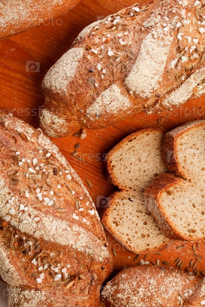 Различные виды хлеба на деревянной поверхности