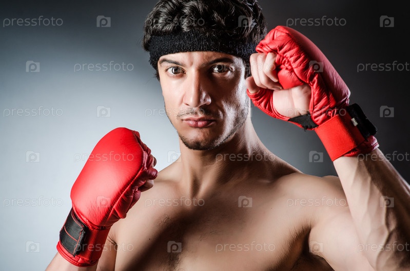 Боксер в красных перчатках