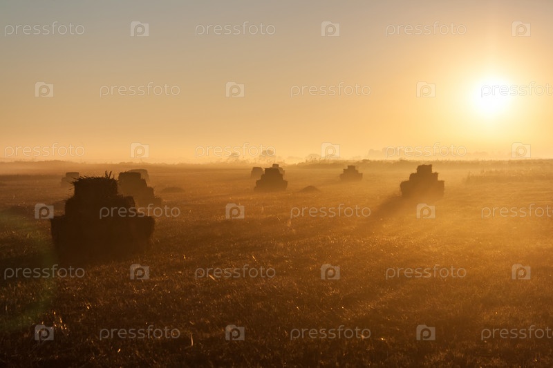 Стога сена на поле на рассвете