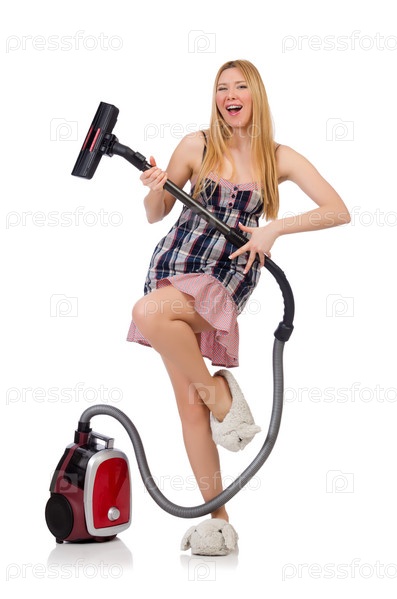 Молодая женщина с пылесосом