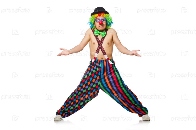 Смешной клоун на белом фоне