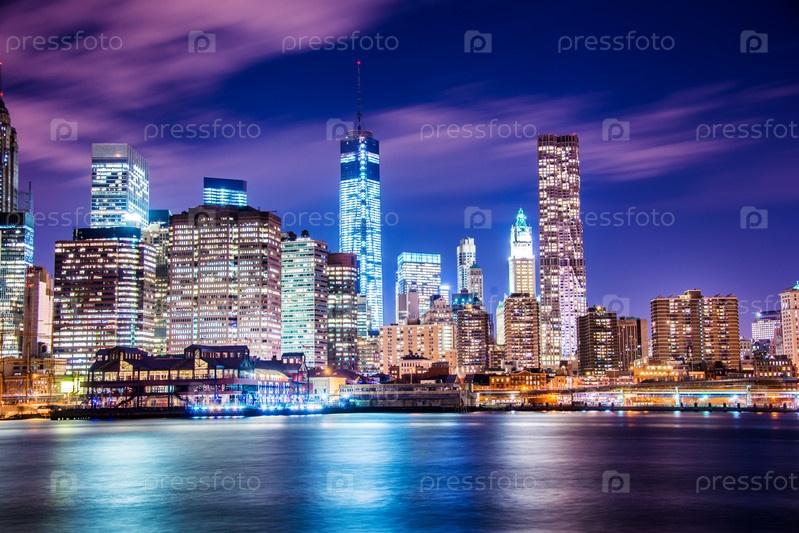 Ночная панорама Манхэттена, Нью-Йорк, США