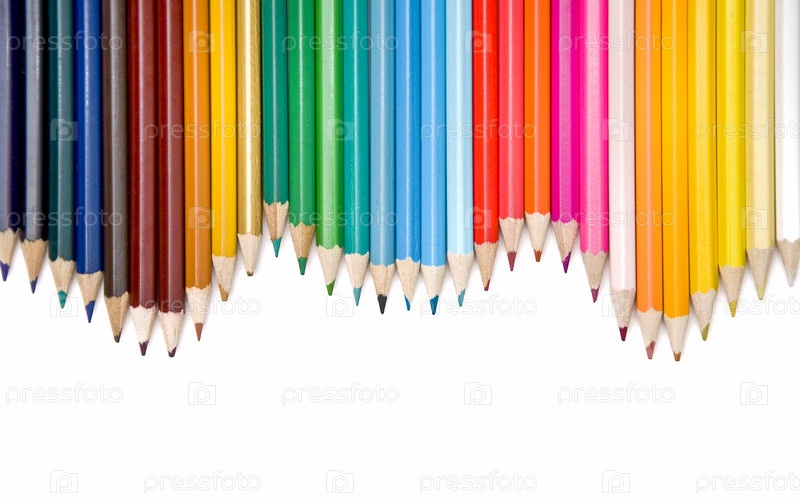 Ассортимент цветных карандашей с тенью на белом фоне