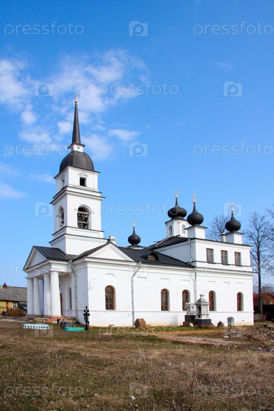 Старая церковь в Кобоне на фоне ясного неба