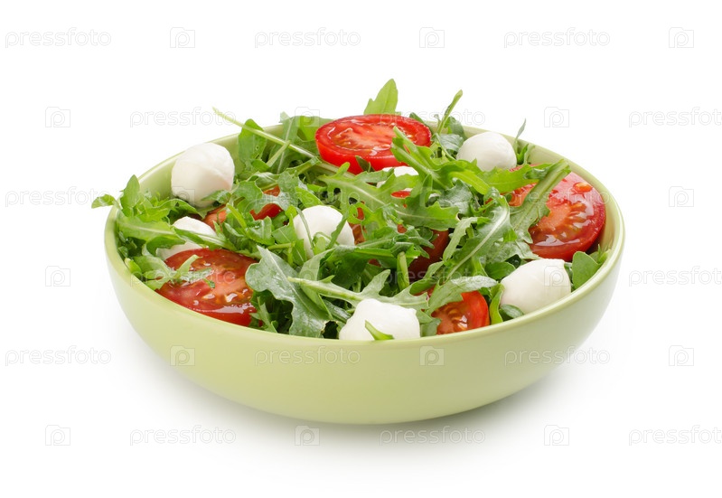 Салат с рукколой, помидорами и сыром моцарелла