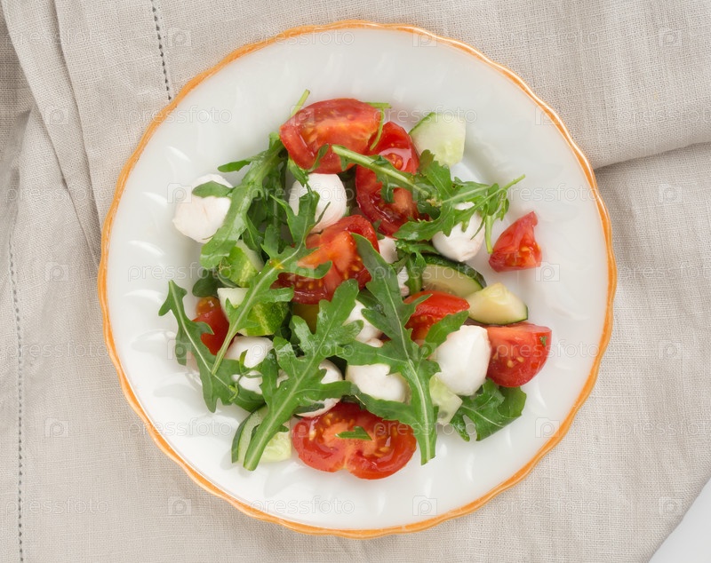 Салат с рукколой, помидорами и сыром моцарелла