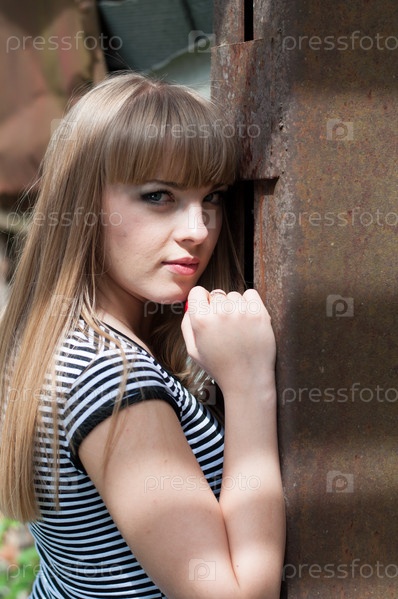 Красивая девушка позирует на улице