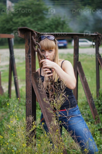 Красивая девушка позирует на улице