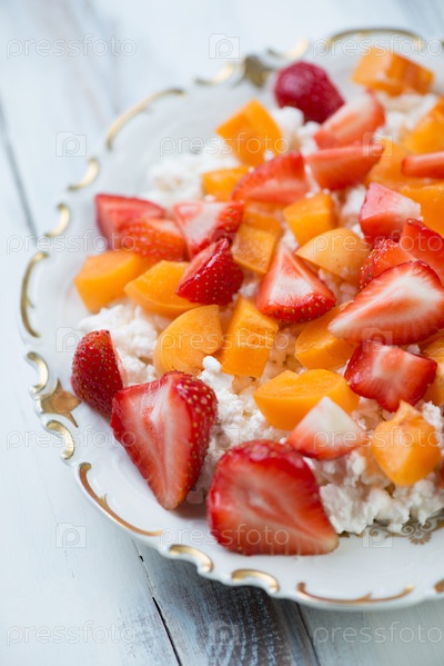Творог с ломтиками фруктов