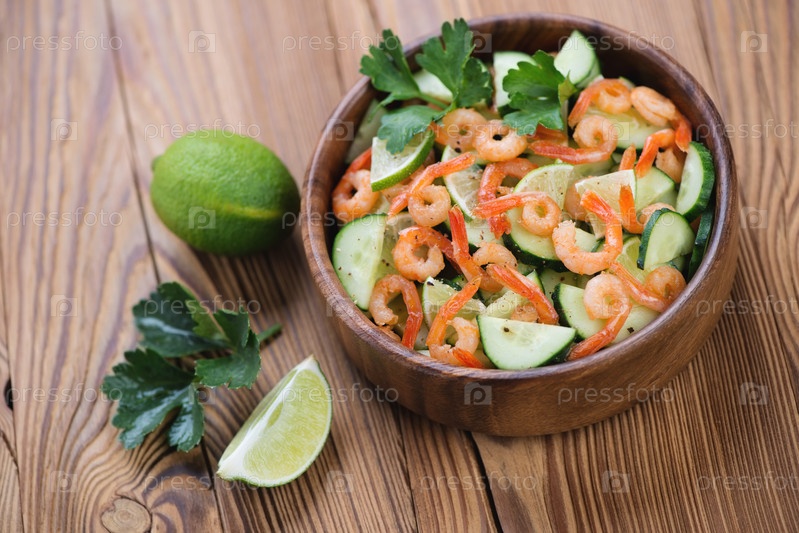 Салат с креветками, огурцами и лаймом