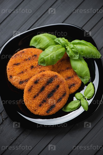 Рыбные котлеты-гриль и зеленый базилик