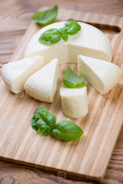 Адыгейский сыр и свежий зеленый базилик
