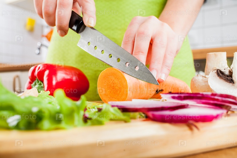 Женщина режет овощи