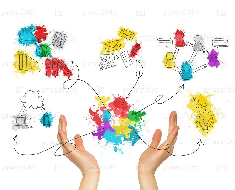 Женские руки держат деловые иконки