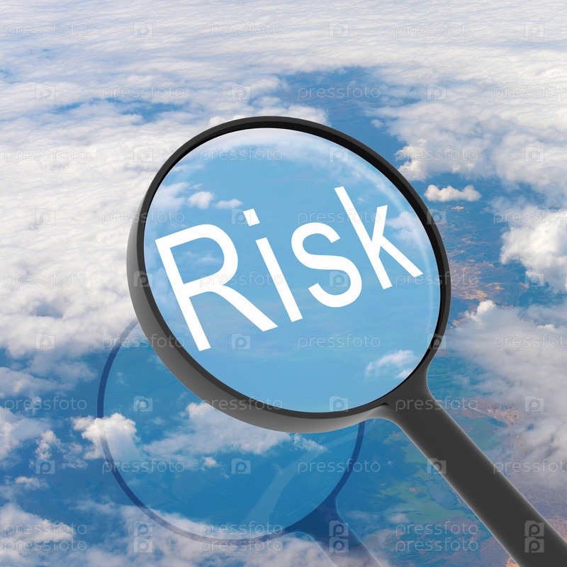 Увеличивающее стекло и слово RISK