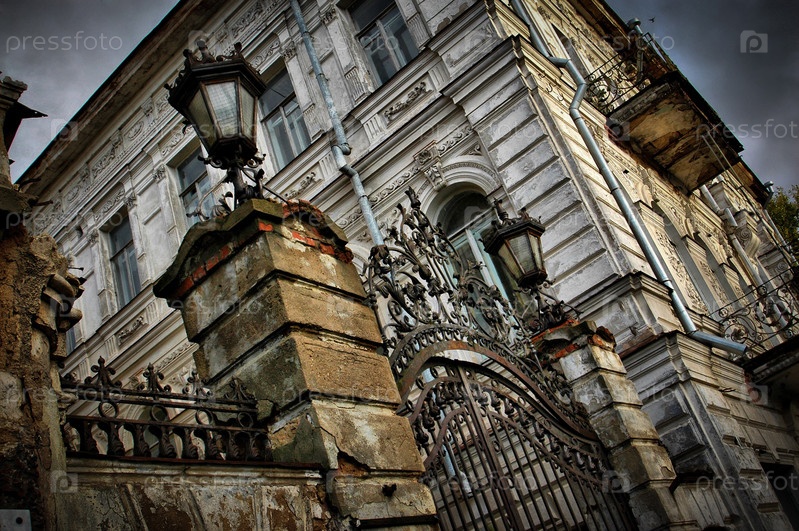 Старинное городское здание и кованый забор