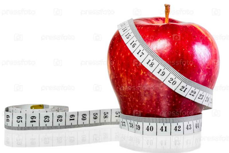 Красное яблоко с измерительной лентой