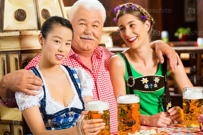 Друзья пьют пиво в Баварский пивной
