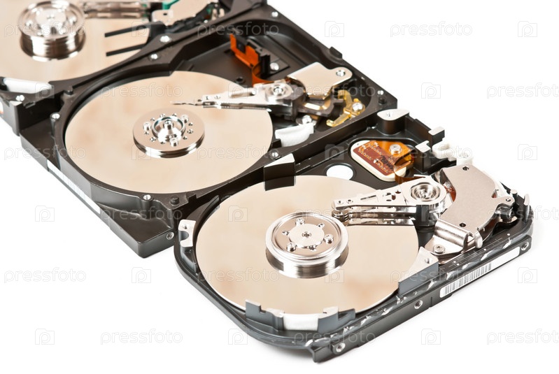 Жесткие диски на белом фоне