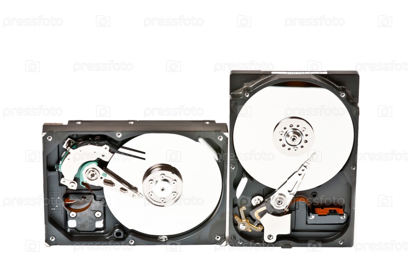 Жесткие диски на белом фоне