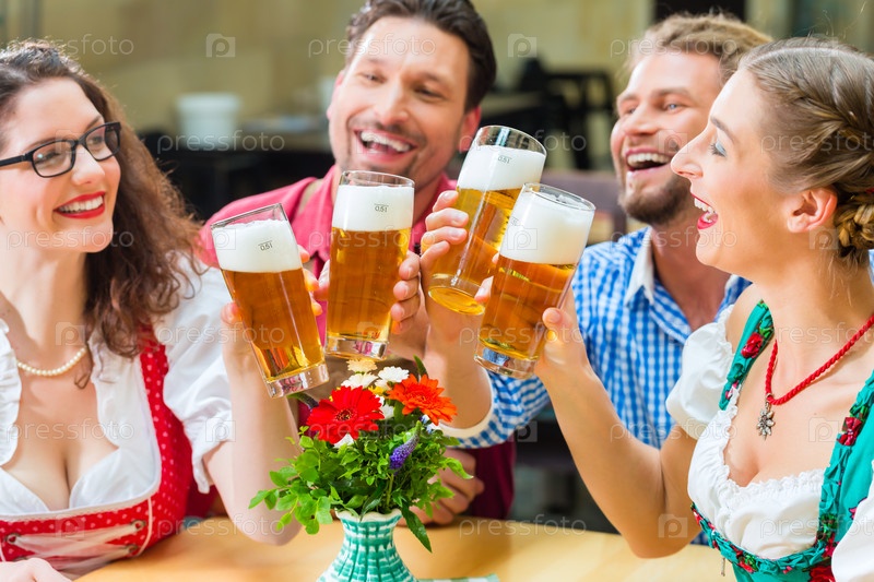 Люди пьют пиво в баварском ресторане