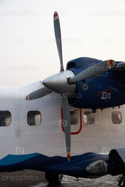 Ближайшее изображение небольшого самолета с винтом Dornier-228, используемого на рейсах Катманду - Лукла в Непале.Это популярное средство для достижения отправной точки похода Эвереста