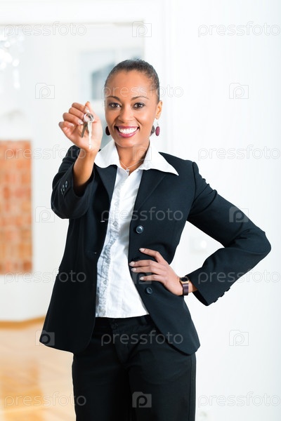 Молодая риэлтор с ключами в квартире