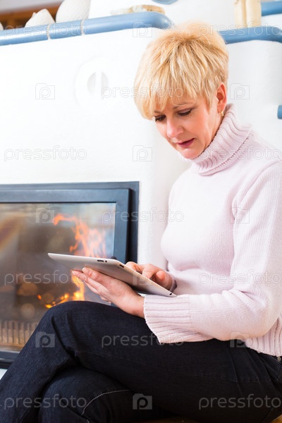 Взрослая женщина дома у камина