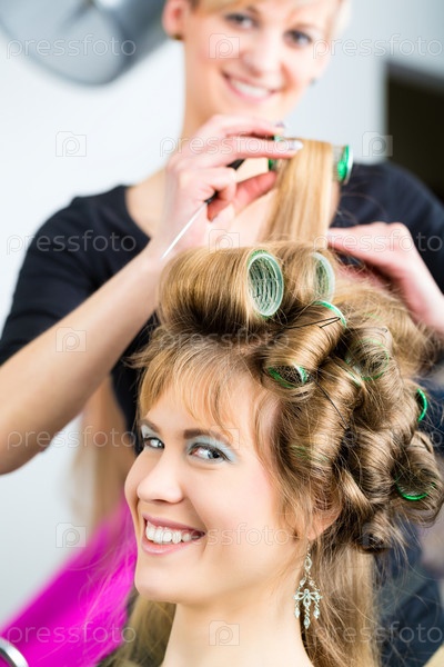 Женщина в парикмахерской делает прическу