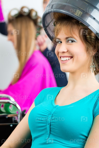 Женщина в парикмахерской завивает волосы