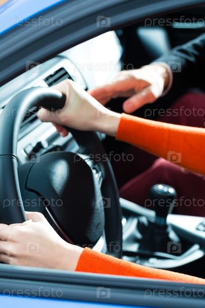 Молодая женщина на уроке вождения