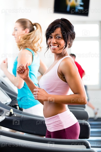 Люди в тренажерном зале на беговой дорожке
