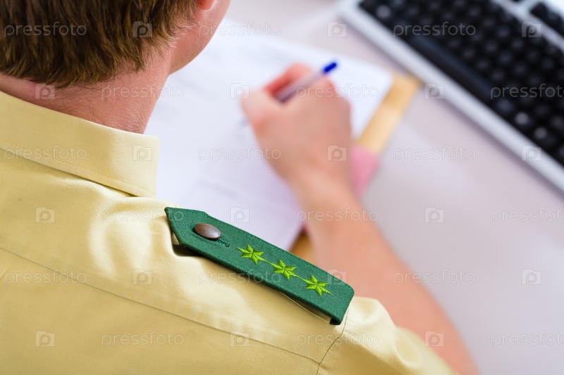Сотрудник полиции работает за столом