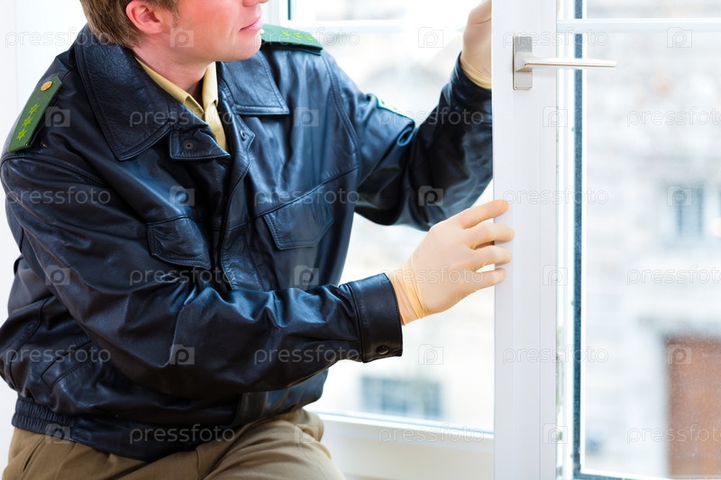 Сотрудник полиции на месте преступления после взлома