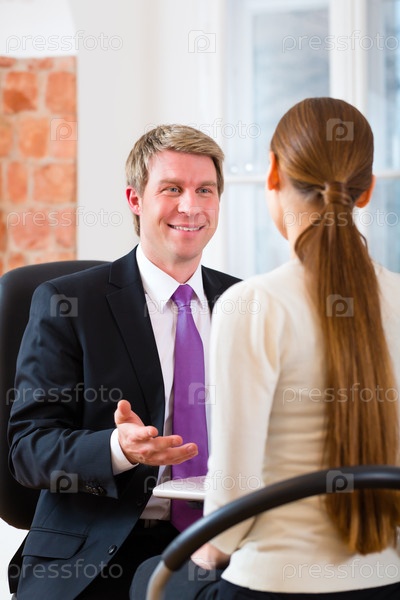 Молодой адвокат консультирует женщину в офисе