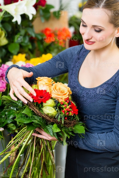 Женщина-флорист в магазине цветов