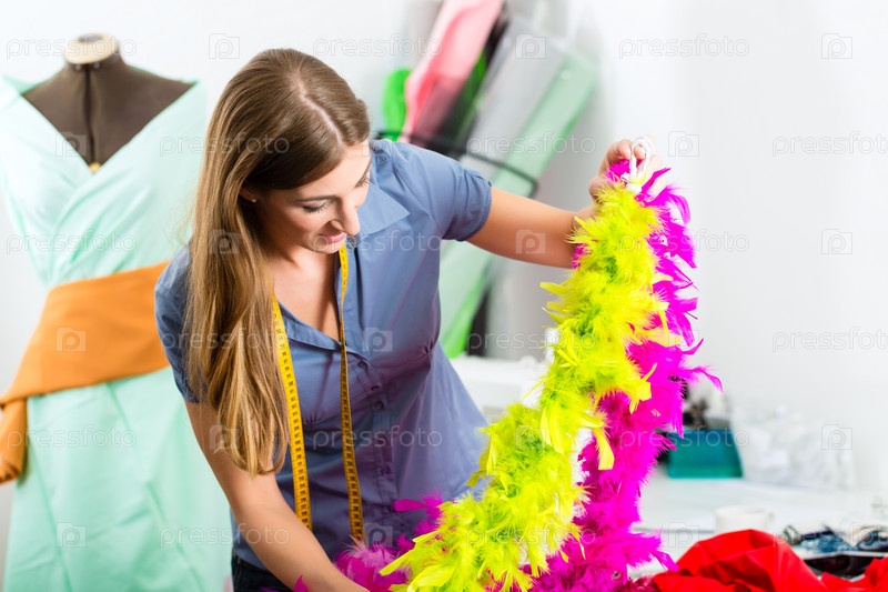 Модельер или портниха работает в студии
