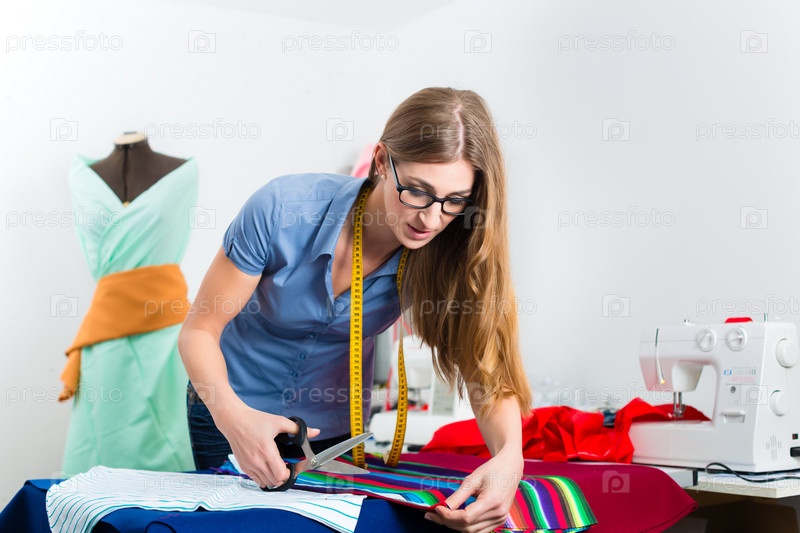 Модельер или портниха работает в студии