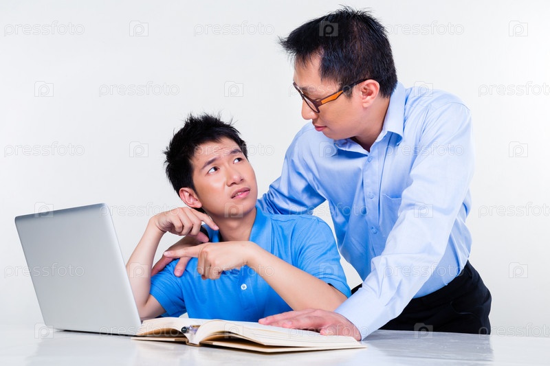 Азиатские отец и сын занимаются дома